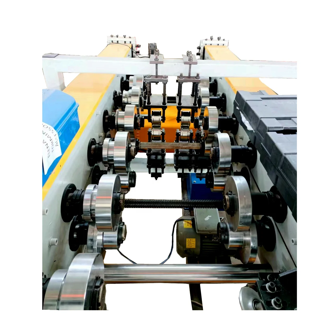 Based on the right feeding platform, different feeding widths can be adjusted by adjusting the screws and nuts on the left platform. Enter the forming section with the left edge of the material in line with the left wheel.