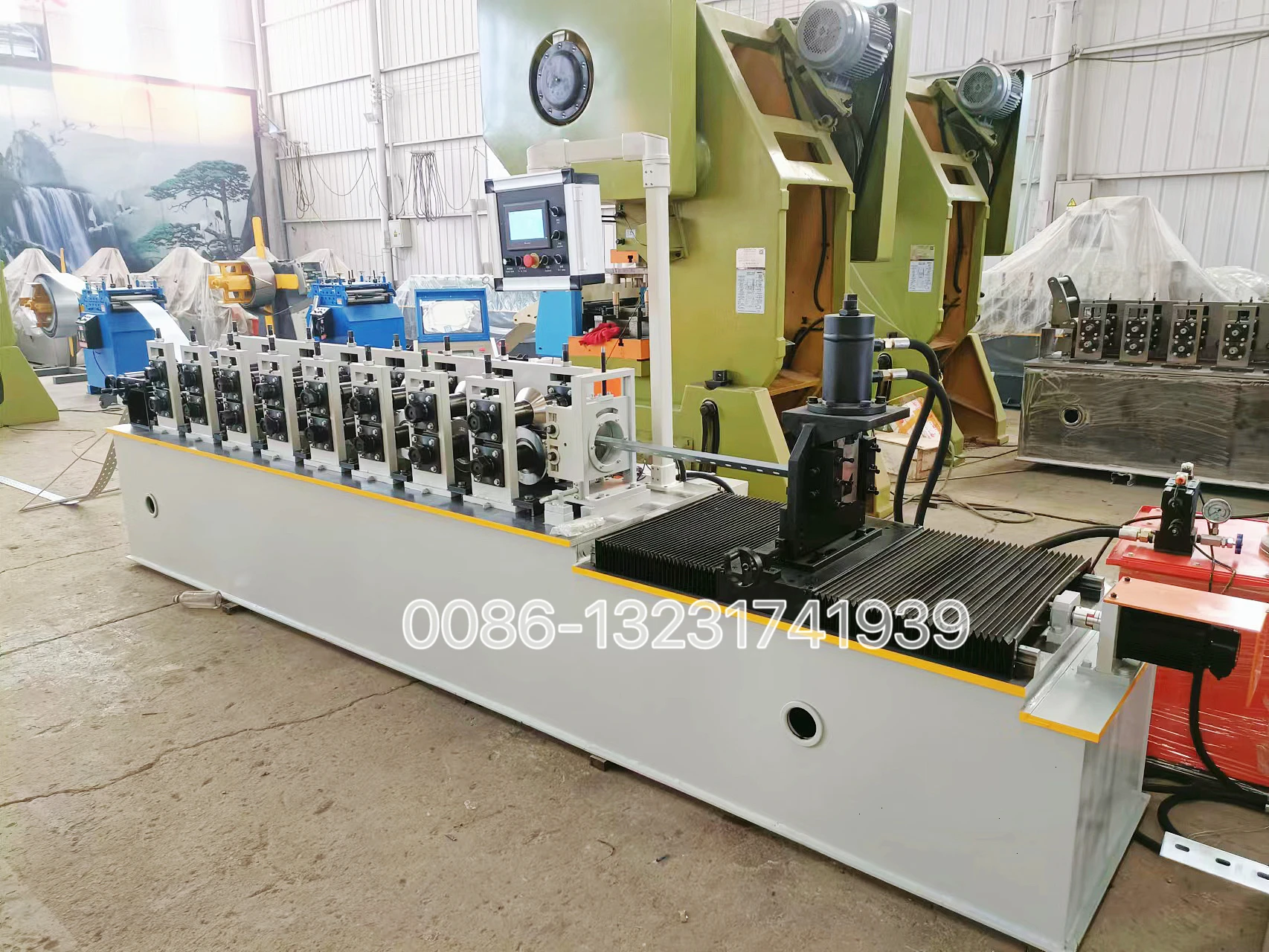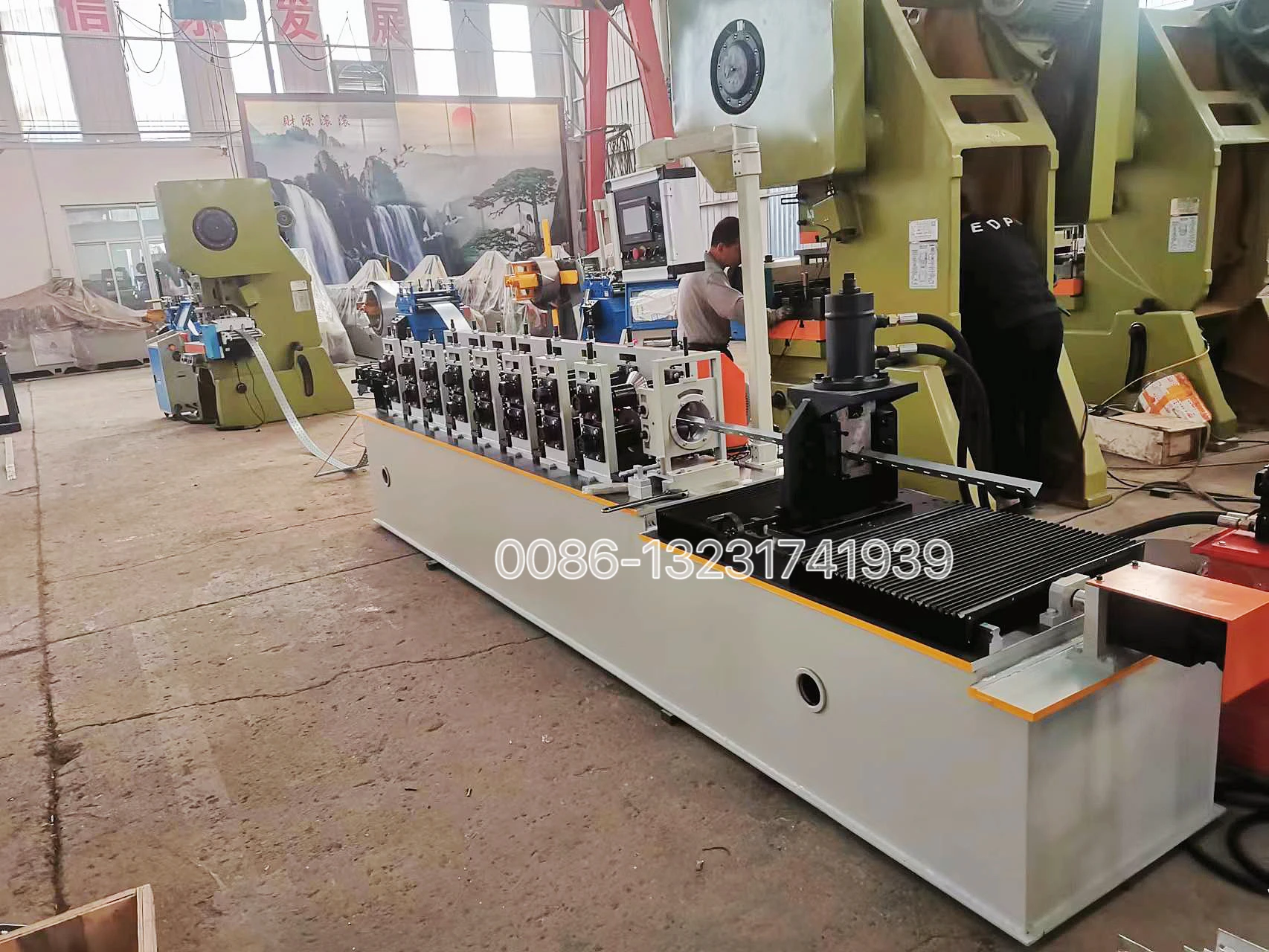 1.The price is decided to your profile width sizes ,height sizes and thickness. maximum 2 mm thick decided all machine parts should use bigger type. 2.Firstly, the production line includes : 2.1:one passive Decoiler (pay attention,free to send you) 2.2: Roll Forming Machine(pay attention, this is the host roll forming machine ) 2.3: one run-out tables (pay attention,free to send you ) 3.Machine base frame material: Whole steel plate welded about the surface which will be made by CNC machine and surface will have good flatness and looks bright and beautiful.(pay attention: the machine base frame was not welded by square tubes) 4.Machine forming Station: 8 stations according to your profiles. (pay attention: this is the best suitable forming stations, neither more nor less about the forming stations) 5.Rollers material : Cr12 material with turning+quenching(hardness 58-62 degrees)+grinding+fine turning treatment which has good quality and this type of processing can guarantee the rollers' hardness meet international standard HRC 58-62 degrees and has good were resistance.(pay attention: the roller material neither made of 45# steels nor bearing steels) 6.Machine stands: Wrought iron welding, 35 mm thick which can have good stable , high procession and will not be deformed when machine running.(pay attention: the thickness was 35 mm, not 30 mm or 20 mm ) 7.Shaft diameter: 50 mm diameter solid shafts (pay attention: the shafts are solid and the shaft diameter is 50 mm, not 38 mm or 40 mm) 8.power: main motor power: 7.5 kw hydraulic cutting motor power: 7.5 kw none-stop servo tracking motor power:1.5 kw (pay attention: We can guarantee your machine has enough power to make the machine running stable . ) 9.Transmission way : Gears which has the best stable performance. (pay attention: the machine is not chain transmission 10.Machine uncoiler type :free to send you . 11.Machine run out table : free to send you . 12.Voltage: CUSTOMIZED .(pay attention : If your voltage is not 380 V , all other voltages we called customized voltagewhich means the all motors of the machine need to be customized according to your voltage.So that this part will add some motor customized costs) 13.Machine Speed: the maximum machine speed included that punching can reach 17m/min.